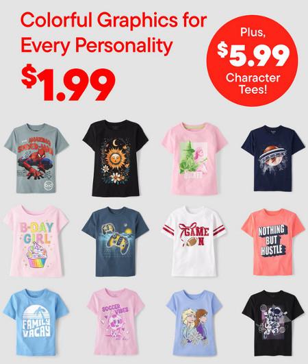 $1.99 Clearance Tees, Plus $5.99 Character Tees